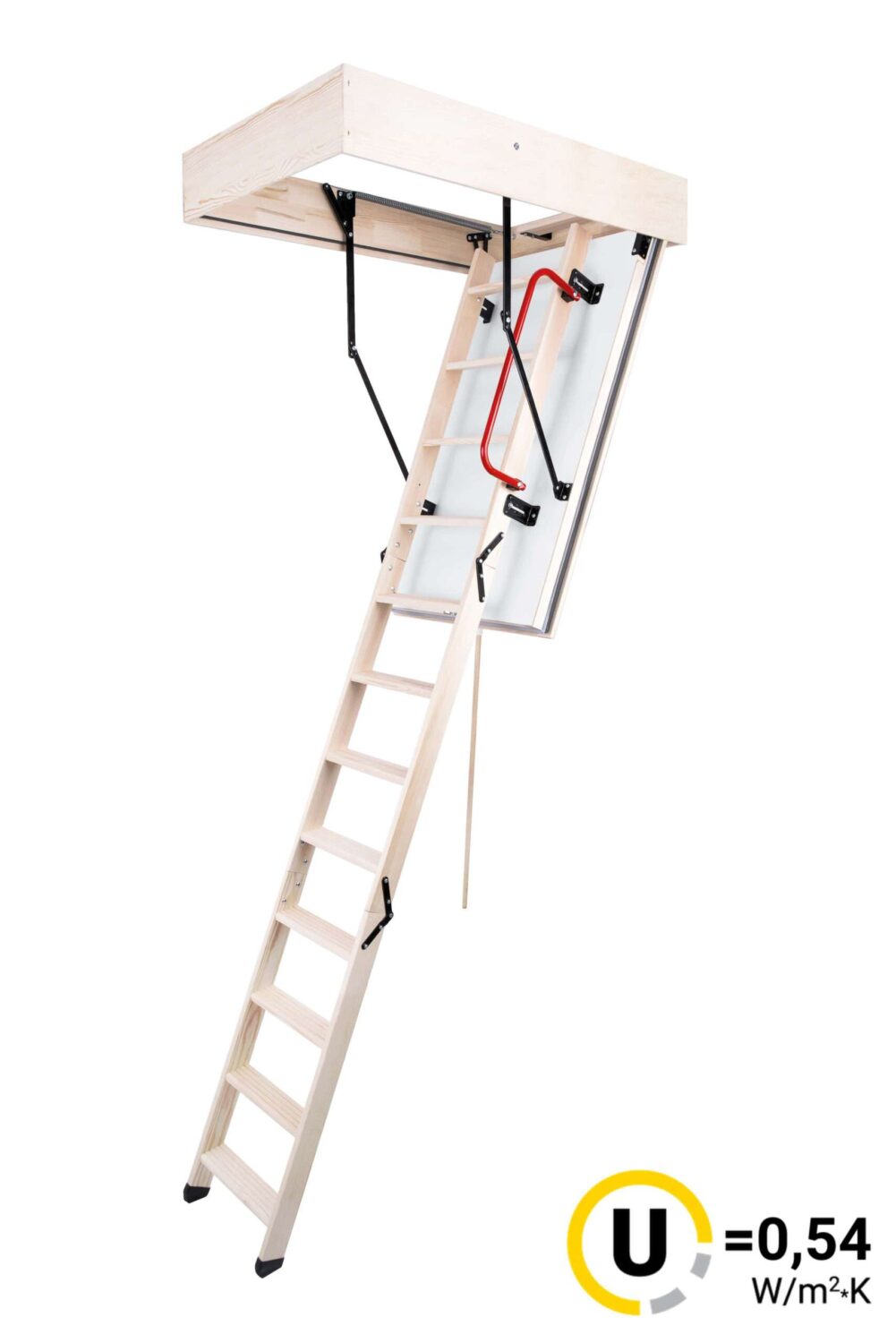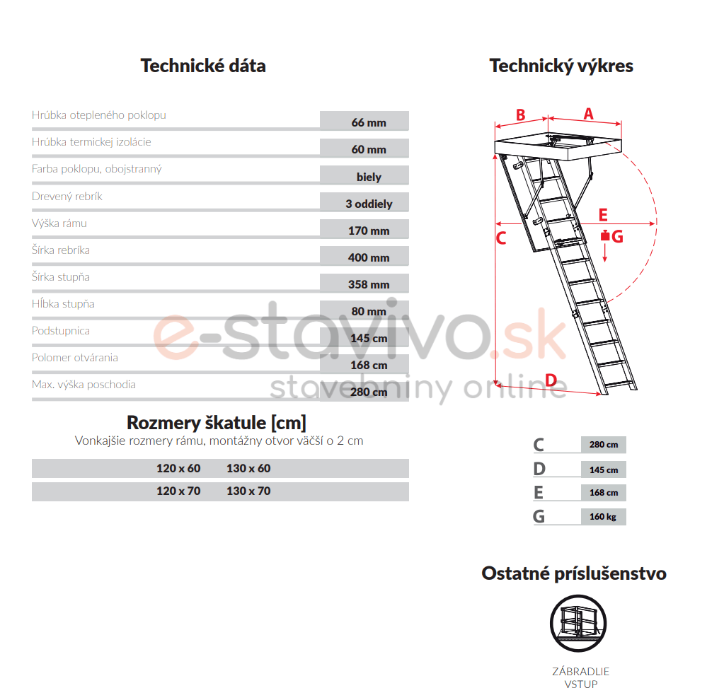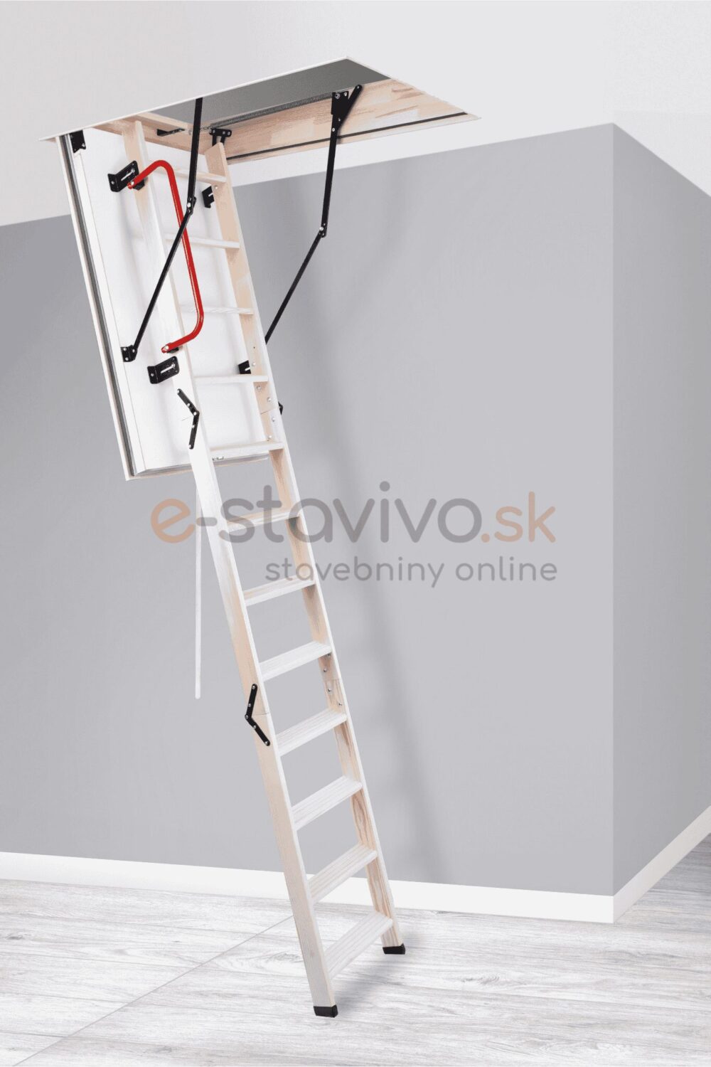 Súčasťou balenia je vyťahovacia tyč, ochranné zarážky, zábradlie, sada pružín na jednoduché otváranie a zatváranie schodov a zatvárací mechanizmus (zámok) – schody stačí len rozbaliť a namontovať.