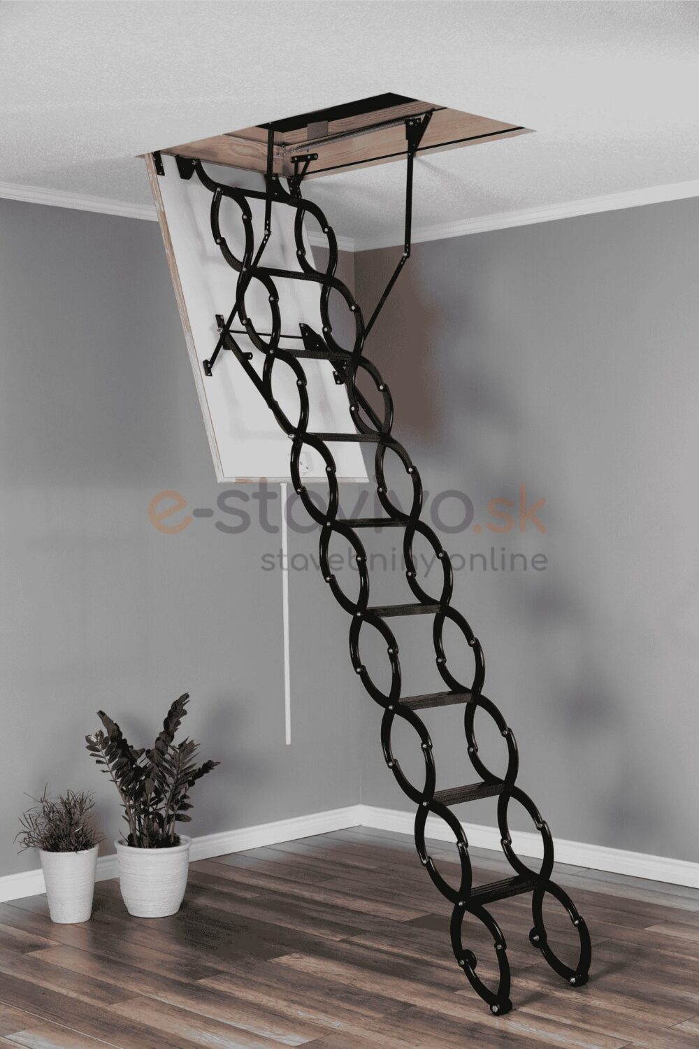 Súčasťou balenia je tyč na vyťahovanie, sada pružín na jednoduché otváranie a zatváranie schodov a zatvárací mechanizmus (zámok) – schody teda stačí len rozbaliť a namontovať.
