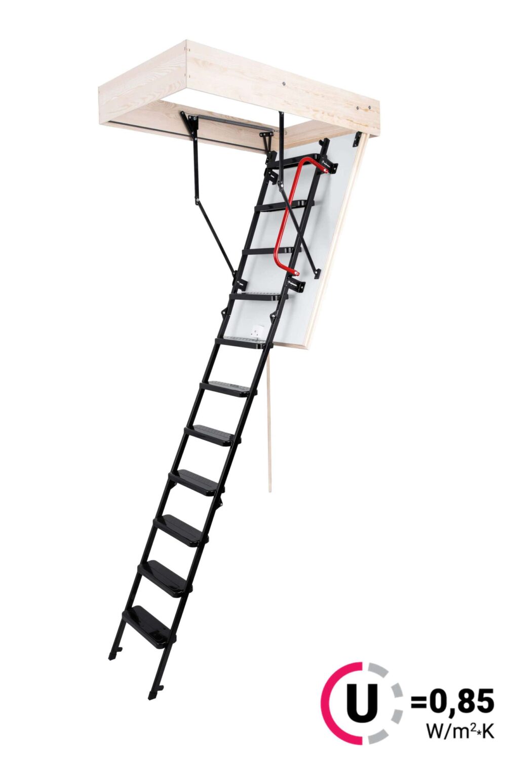 Schody sú vyrobené pre maximálnu výšku podlahy 280 cm a majú drevený rám vysoký 170 mm. Schody majú 3-dielny kovový rebrík na lezenie, stupne s protišmykovou úpravou a práškovou povrchovou úpravou. Jednotlivé časti rebríka sú spojené špeciálnou oceľovou sponou.