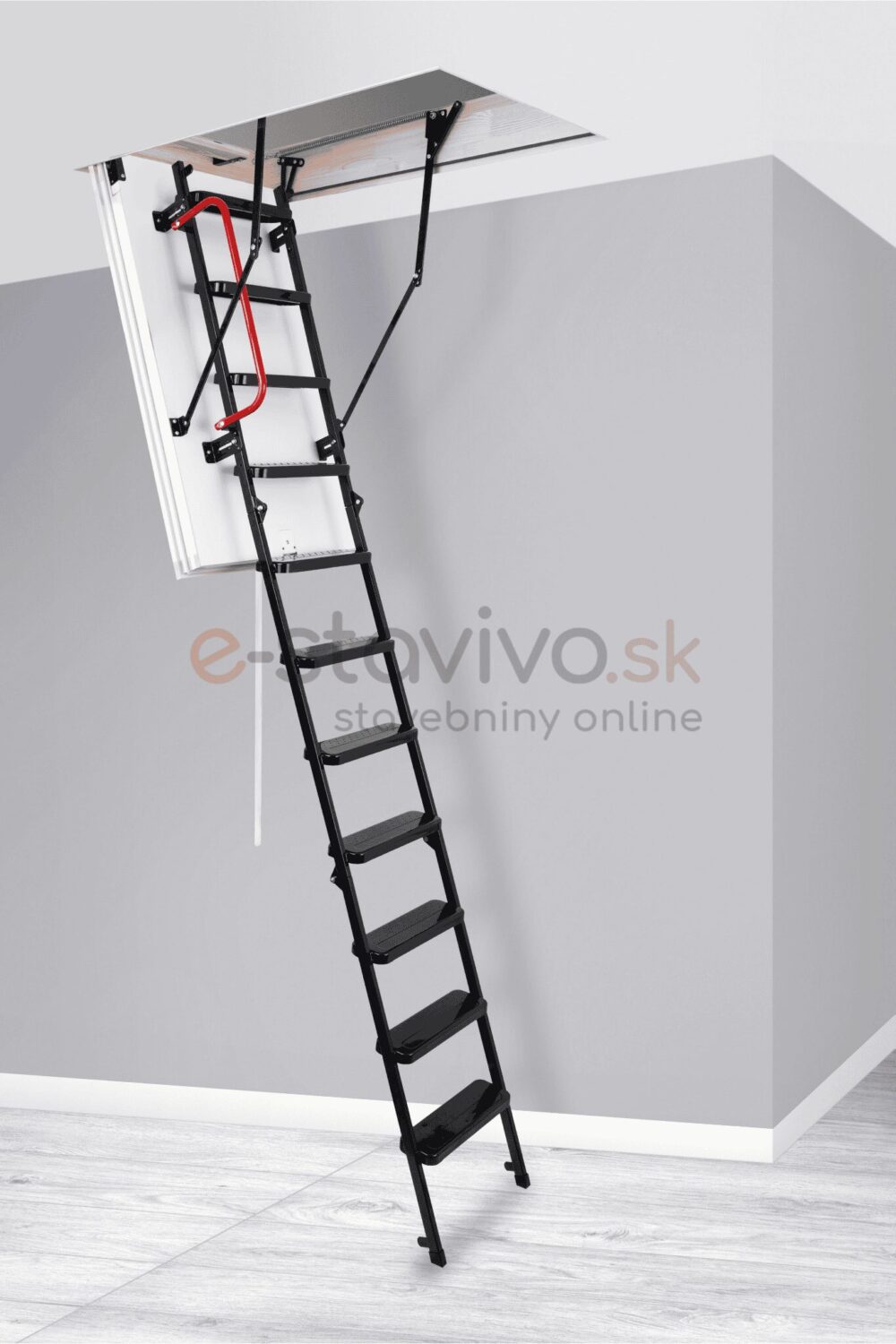 Súčasťou balenia je sťahovacia tyč, sada pružín na jednoduché otváranie a zatváranie schodov, zatvárací mechanizmus (zámok), ochranná zarážka, zábradlie a horný schod – schody tak možno jednoducho rozbaliť a namontovať.