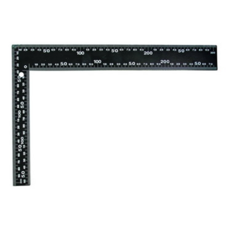 Uholník čierny, stupnica v mm na vonkajšej aj vnútornej strane, vyrobený z pružinovej ocele.